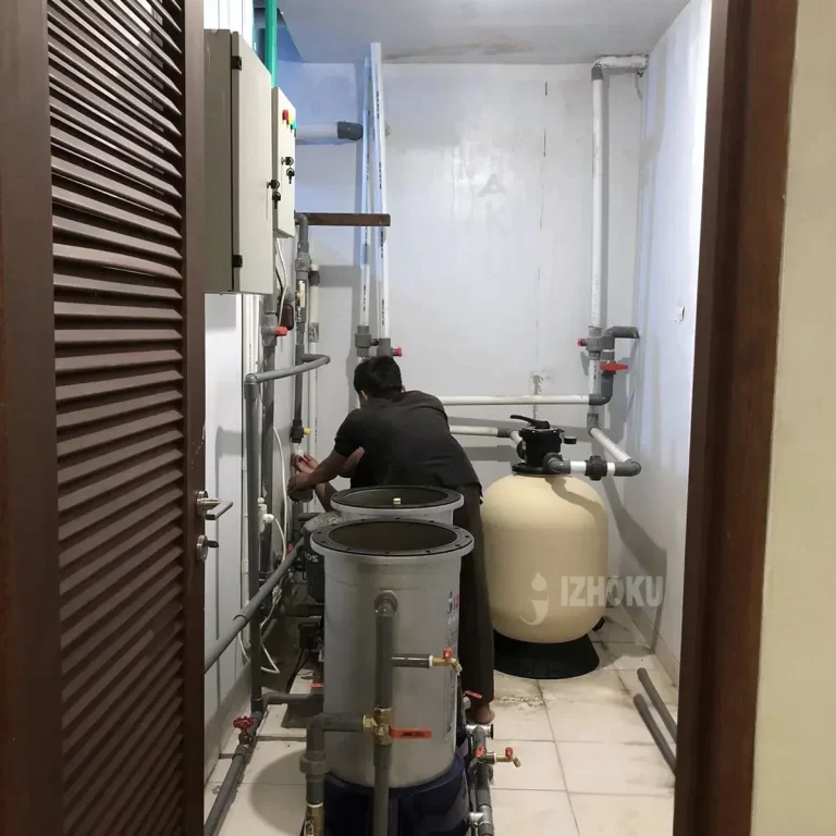 Perawatan Izhoku Water Filter tipe satu tabung dengan melakukan penggantian karbon aktif dan pencucian/ penggantian Cloth Filter secara berkala (setiap 250.000 liter atau ketika kondisi media karbon jenuh). Sedangkan untuk tipe Izhoku dua tabung, selain penggantian karbon aktif dan cloth, diperlukan juga backwash manual pada tabung sand filter.